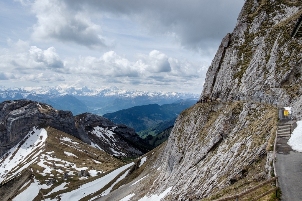 從馬特洪峰、少女峰到皮拉圖斯山,每一座高山都有自己的風貌和傳說,然而最為陡峭的齒軌列車和龍的傳說令人對皮拉圖斯山無法忘懷。從皮拉圖斯山上往下看時,想像龍正盤踞在這睡覺的情景,別有一番趣味。馬特洪峰和少女峰都超過4000公尺的高度,所以望出去都是一片白皚皚的雪,但皮拉圖斯山僅有2132公尺,因此我們去的時候剩下的殘雪並不多,而且從山上就可以看到山下的風景,甚至可以直接看到盧森市區。