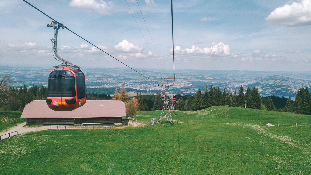 在山上餐廳用完午餐後,我們搭乘景觀列車下山,沿路可以欣賞皮拉圖斯山的景色、盧森的市區和湖景。